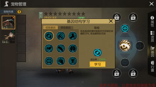 并且在这次宠物功能解锁中还开放了宠物的基因系统哦,你想要的宠物心随你动,各种基因搭配哪种才是你的菜皆由你定,如果自己培养出纵横这个末日次元的宠物岂不是占据主动能够进攻外星文明和丧尸恐龙了呢?基因系统是一方面,这次还添加了宠物的技能,针对每种恐龙的特性设计了各式各样的技能,让宠物变得更加独一无二,考虑好你的培养计划了吗?同时新增了家园宠物摆放功能,玩家可自行在家园中摆放宠物位置,来共同抵御家园侵略哦,与宠物并肩作战!