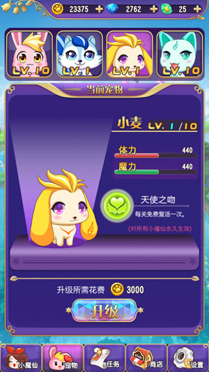小麦,特殊技能“天使之吻”,对所有玩家生效,可升至10级。技能效果为每关免费复活一次。