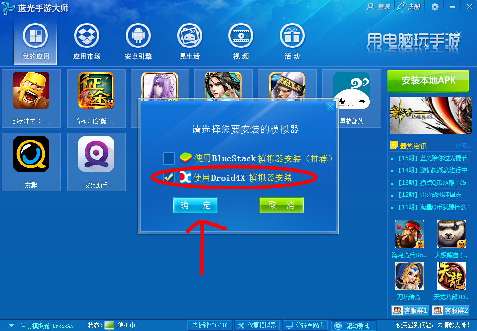 (4)使用D4模拟器安装,安装完成以后打开游戏。