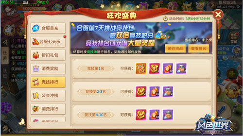 1、活动期间,参与竞技场挑战可获得双倍竞技积分,合服第8天0点根据竞技场排名进行结算,根据排名发放奖励