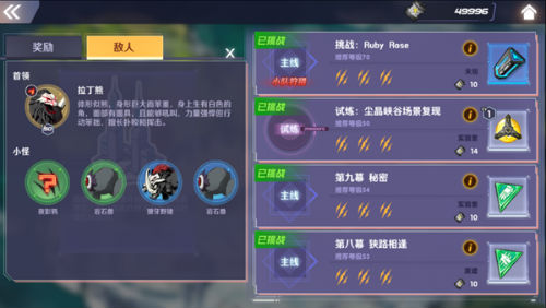 在关卡地图中会出现具备各种属性的小怪,而重要的BOSS的属性,则可以提前在关卡详情中查看: