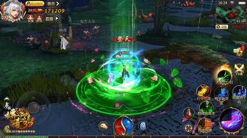 桃花同叶片齐飞、交织着薄薄的绿色与桃色光影,再加上从脚底缓缓荡漾开的绿色细纹,天人级治愈术不同于攻击技能所散发出的磅礴气势,而显得更具视觉美感。同样,天人级的金刚护体也极具明艳效果,各式符文像是图腾般浮现在半空中和地上,十分的赏心悦目。