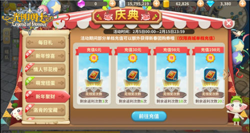 《光明勇士》情人节活动已经开启。参与情人节花榜、团购秒杀等活动,就有机会获得丰厚的奖励。如果你心动了,那就赶快来参与活动吧!