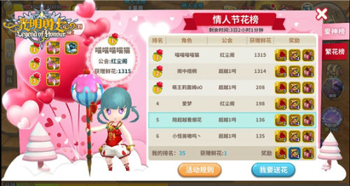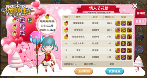 在活动期间,各位萌主可以给自己的公会好友或者CP互赠情人玫瑰,提升双方的收花排名。活动分为爱神榜和繁花榜两种,当萌主每赠送一朵,就可在繁花榜上积累一个赠花数,而收到花的人则可在爱神榜上累计一个收花数。