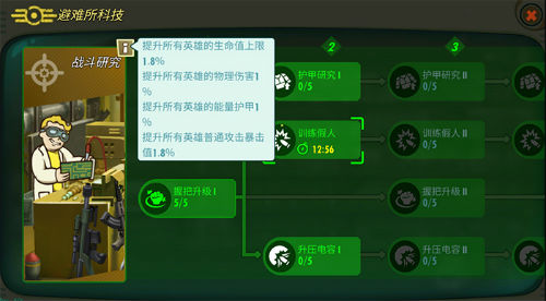 三、“科研室”,这个房间是“永久的buff”,一定要时时刻刻的对其进行关注,它可以进行生产、战斗方面的研究,确保监督者在城建以及英雄战斗上的收益可以最大化。
