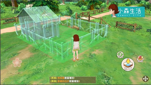 准备足够的材料与金币,就可以建造牧场了,牧场可以制造完成后,拿出放置在空地上搭建,如果想要移动牧场,点击“举起”按钮就可以重新放置。点击“收回”,牧场可以被收入背包中,牧场中的小动物也会被一并收入背包。