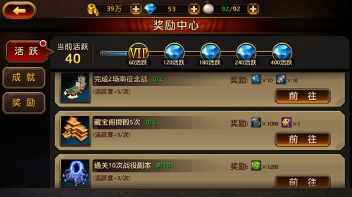 首先,最简单的就是完成每日签到以及日常的活跃任务。完成不同的活跃任务,可获得金币、钻石、声望等不同的奖励。