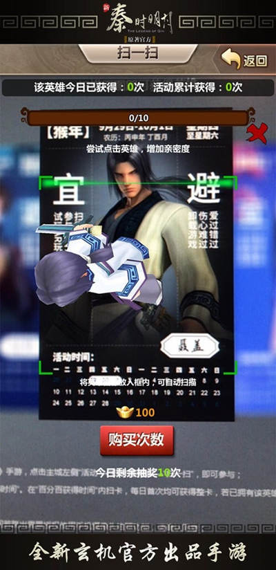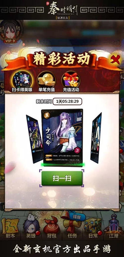 玩家只需在《新秦时明月》手游中,点击主城右侧“活动”→“扫卡得英雄”→“扫一扫”,在活动时间内扫描官方提供的图片即可参与活动。